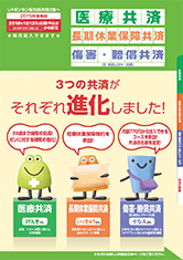 持病(既往症)のある方の病気、ケガ、死亡、重度障がいに備える共済です。入院・手術に対応する「医療コース」と死亡時・重度障がい時に対応する「生命コース」があり、「医療コース」は「休業補償給付特約」を付加することで収入の不足をカバー。